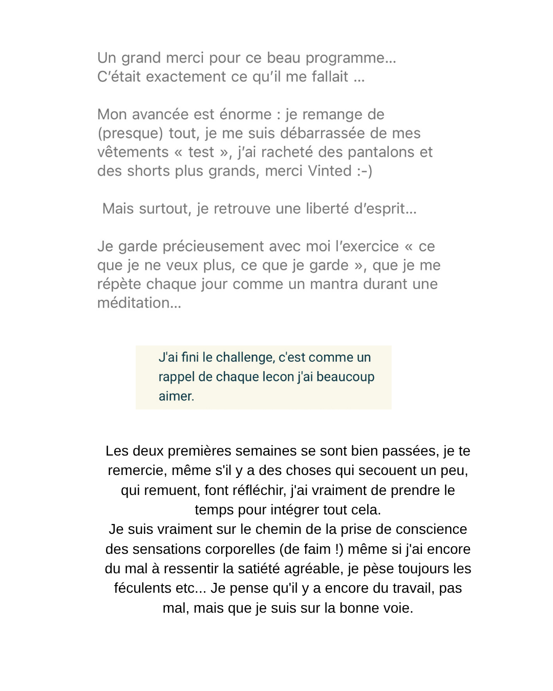 Aujourd’hui, la nourriture ne me contrôle plus et je me sens INCROYABLEMENT légère et libérée, tant physiquement qu’émotionnellement !